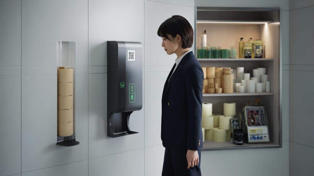 At 7:42 a.m. on a Tuesday in Tokyo, a woman in a navy suit walks into a spotless office restroom, pauses, and actually smiles at the toilet paper dispenser. Not because it’s fluffy or scented. Because it’s talking to her — silently — through a tiny QR code and a discreet LED light that just blinked green.
