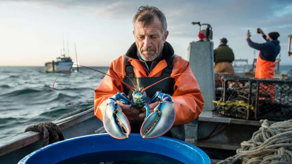 The first thing he noticed wasn’t the claws. It was the color. In the gray dawn light off the Maine coast, a small shape rose in the trap, glowing like a dropped gem on the ocean floor. At first, veteran lobsterman Jake Turner thought it was a piece of plastic tangled in the line. Then it moved, flexing its tail, and the whole boat seemed to go quiet.