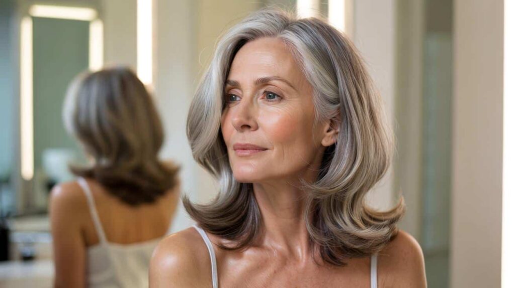 “Reverse coloring is like dialling down the volume of color instead of turning it off,” explains Ana, a colorist who sees more and more women over 50 asking for it. “We respect the gray at the root, we play with light on the rest. It looks less ‘done’, more expensive, more free.”